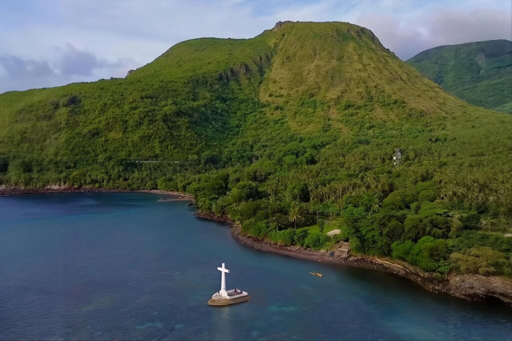 A few kilometers away lies one of Camiguin’s most haunting landmarks—the Sunken Cemetery. In the 1870s, an eruption from Mount Vulcan submerged the old burial grounds beneath the waves, leaving only a giant cross marking the site above water.