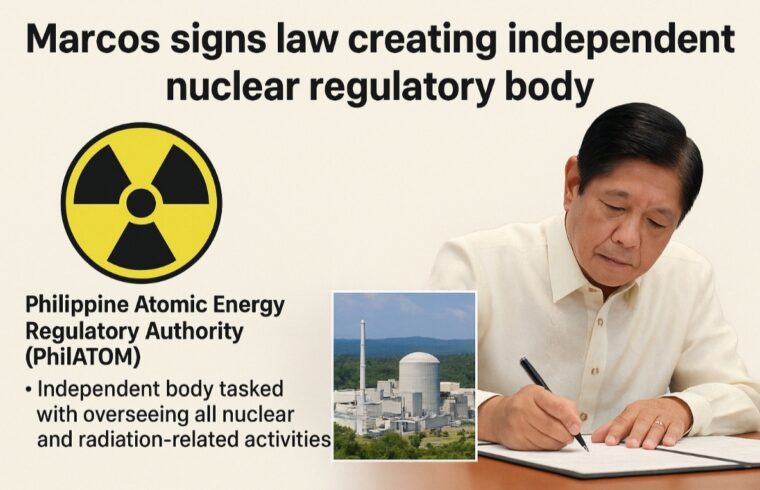 President Ferdinand Marcos Jr. has signed into law a measure establishing the Philippine Atomic Energy Regulatory Authority (PhilATOM), an independent body tasked with overseeing all nuclear and radiation-related activities in the country, a key requirement for the possible use of nuclear power.