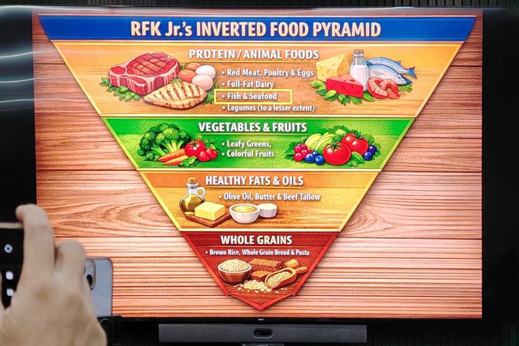 He pointed to sardines as uniquely suited to address this crisis because they deliver protein and omega-3 fats without carbohydrates, resulting in what he described as zero insulin impact. The timing of the declaration, he added, aligns with the release of a new inverted U.S. Food Pyramid that elevates animal protein to the top tier, with sardines ranked among the most recommended foods.