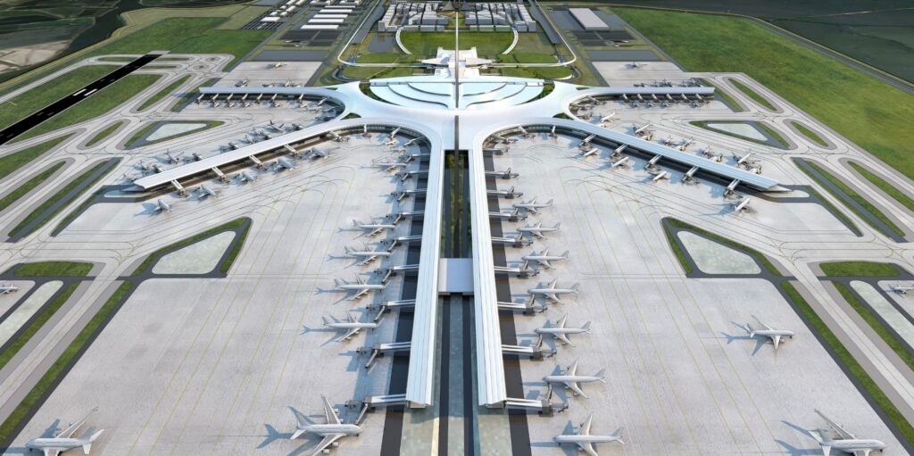 Despite lingering concerns, construction continues to accelerate. Plans call for a single vast passenger terminal designed to process all 100 million travelers annually, six concourses extending from the main hall, a 52,000-square-meter cargo terminal capable of handling 500,000 tons of freight each year, and four runways from 2,600 to 3,500 meters with a combined capacity of 240 aircraft movements per hour.