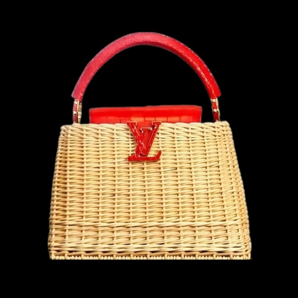 As a pointed aside to this global celebration, Louis Vuitton has also acknowledged the Philippine market through rarity rather than redesign. The house released a Philippines-exclusive Capucines Wicker bag as part of its Resort 2025 collection: a medium raffia piece with a red crocodile leather flap and handle, produced in just seven units worldwide and priced at approximately ₱1.25 million—well above the usual Capucines range in the local market.