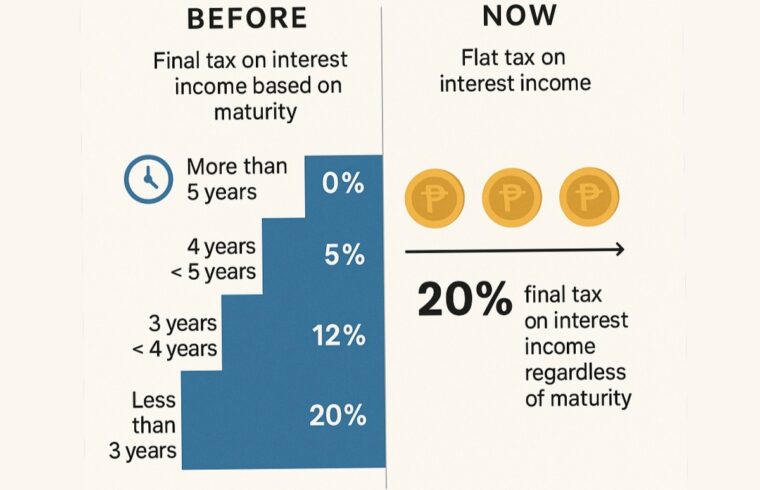For decades, the tax framework quietly served as a reward system for the wealthy. Interest income from peso bank deposits was taxed on a sliding scale based on the maturity period: funds held for over five years? Tax-free. Four to five years? Just 5%. Three to four years? 12%. Anything below three years? The full 20%.